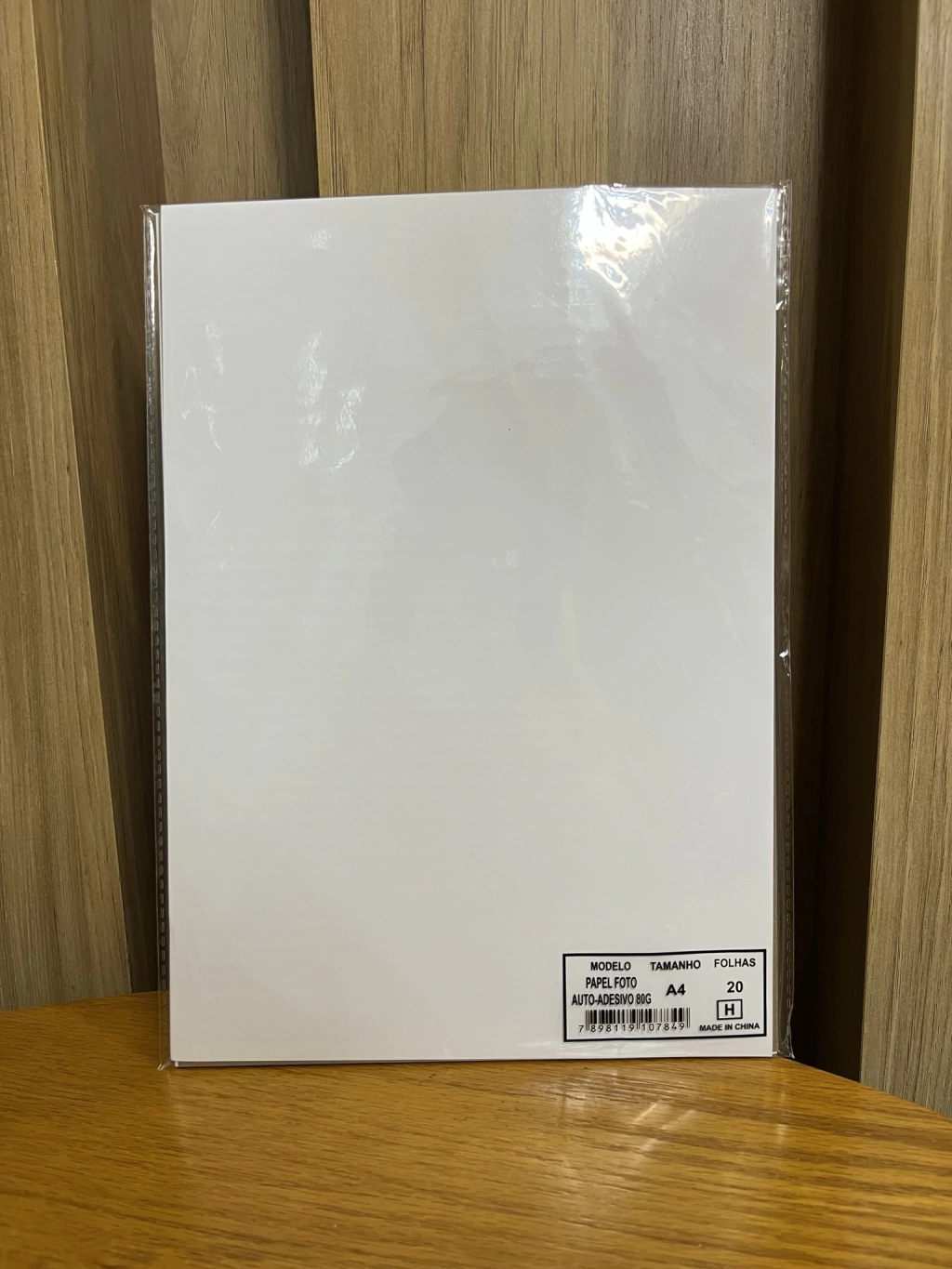 Papel Fotográfico Adesivo Brilhante Glossy 80g tamanho A4 MASTERPRINT - 20 Folhas CONTEÚDO: 1 Pacote com 20 folhas Características principais: Papel fotográfico Auto Adesivo, Glossy, branco, alta resolução, para impressão a jato de tinta, secagem instantânea. Impressão à prova d´água. Não recomendado á constante exposição em luz UV, luz amarela e ao sol. Compatível com impressora Ink Jet HP / Epson / Canon / Lexmark Obs.: Para secagem instantânea recomenda-se o uso de tinta Corante. Principais Trabalhos: Personalização de potes, garrafas, latinhas, brindes para festas, fotos, painel, rótulos, etiquetas, cartazes que necessitam colar, adesivos em geral, mapas, sinalização e layout interno de empresas e escritórios.